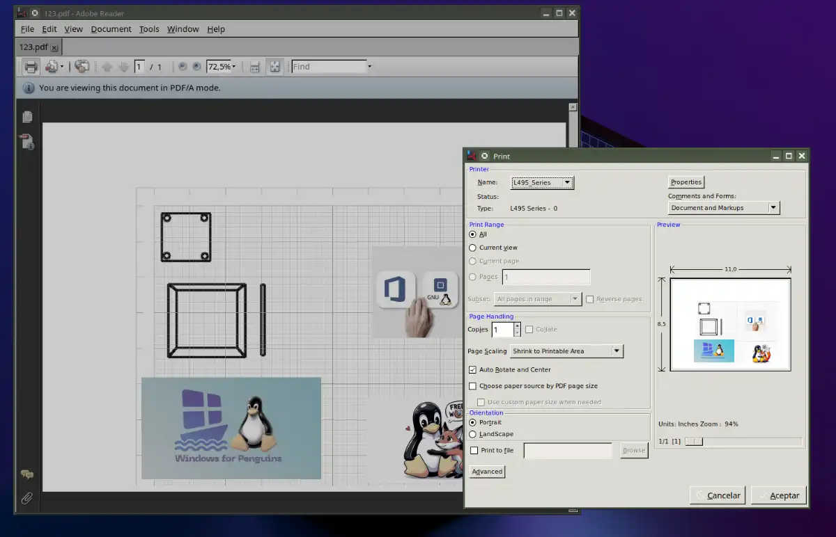 En algunos casos, Adobe Reader necesita una pequeña ayuda extra desde su propia configuración. Abre el programa, ve a Edición → Preferencias → Impresión. Ahí encontrarás dos opciones clave: el "Sistema de impresión" (puedes cambiarlo de CUPS a LPR y viceversa) y el "Comando de impresión" (asegúrate de que ponga lp o lpr). Prueba distintas combinaciones. Si todo falla, siempre puedes dar el salto a Okular, el visor de documentos nativo de KDE, que imprime sin ningún problema y además te permite anotar PDFs. En la comunidad de Reddit de Bazzite muchos usuarios recomiendan Okular como alternativa moderna. Pero con los pasos anteriores, lo más seguro es que ya estés imprimiendo.
